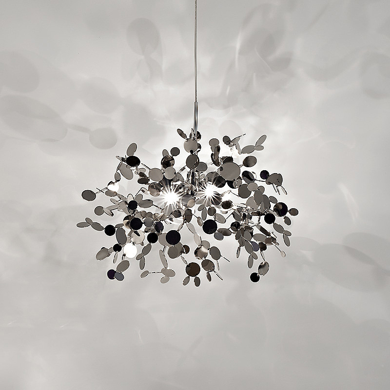 Nordic Minimalist Living Room Window Bar Tree Leaf Stainless Steel Chandelier
